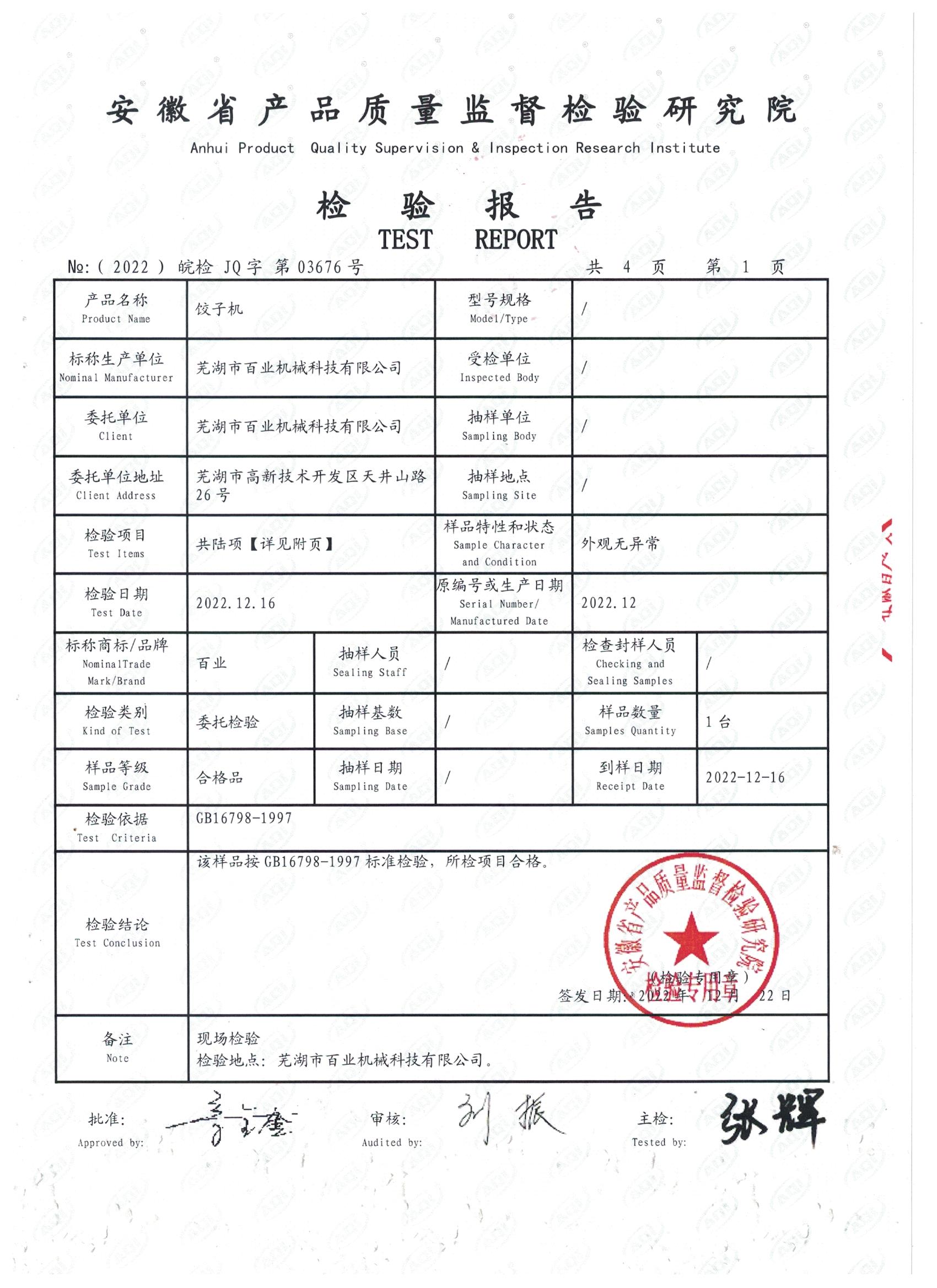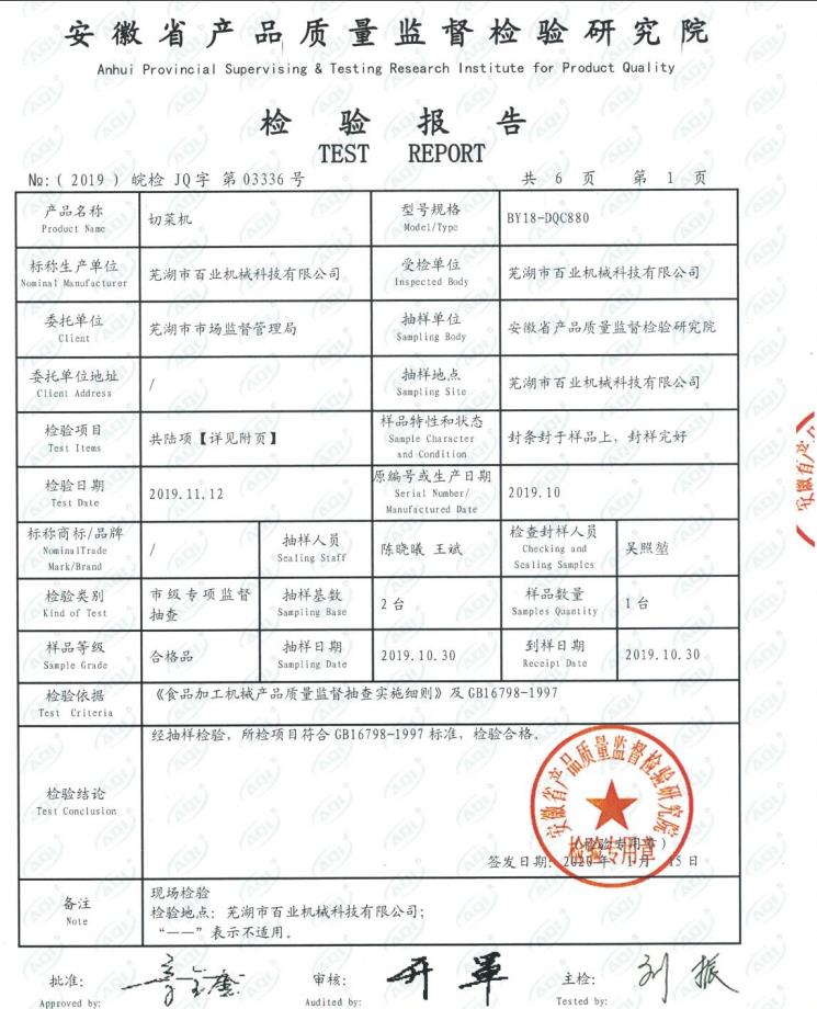 質(zhì)檢報告